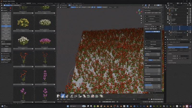 This update also includes per-instance scaling for individual asset types inside scatter systems, fast one-click asset swapping from the Arborea browser, and the ability to update Arborea directly inside Blender.